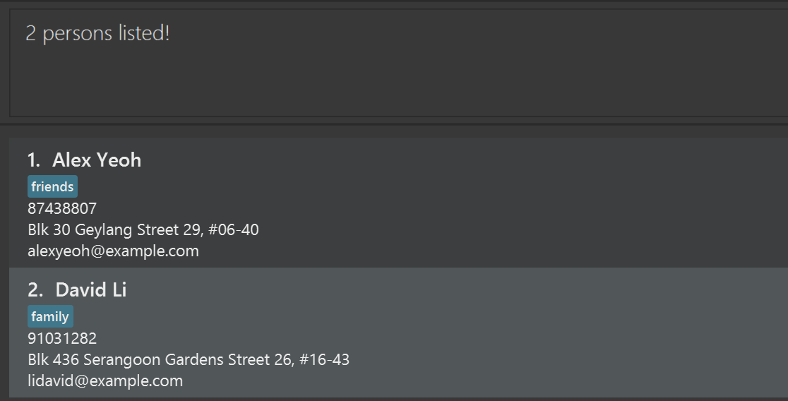 name/NAME [t/TAG] can be used as name/John Doe t/friend or as name/John Doe.Items with … after them can be used multiple times including zero times.